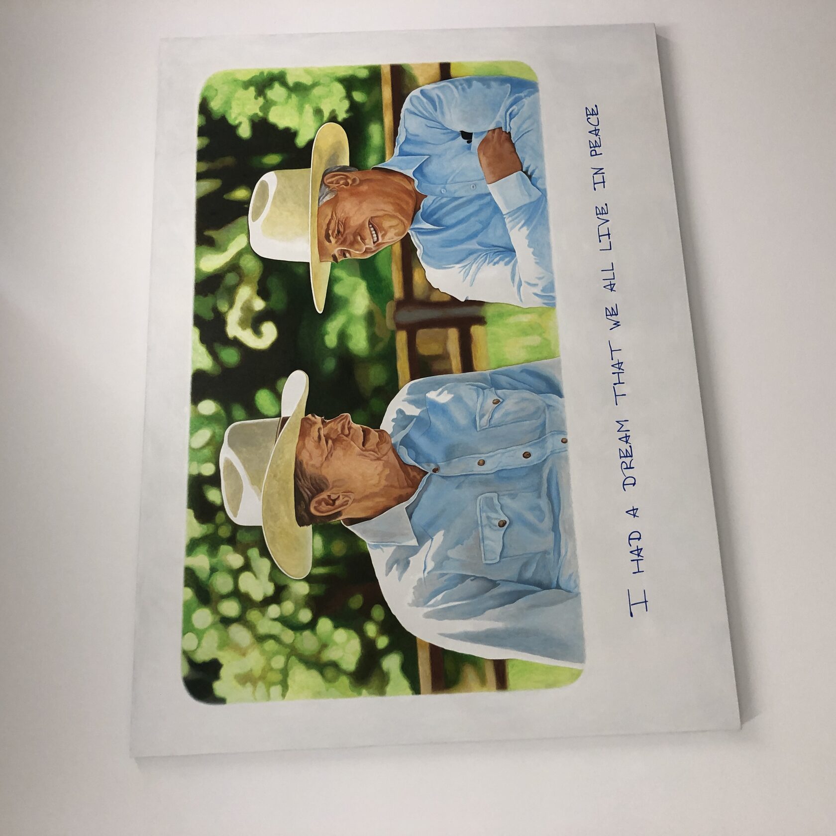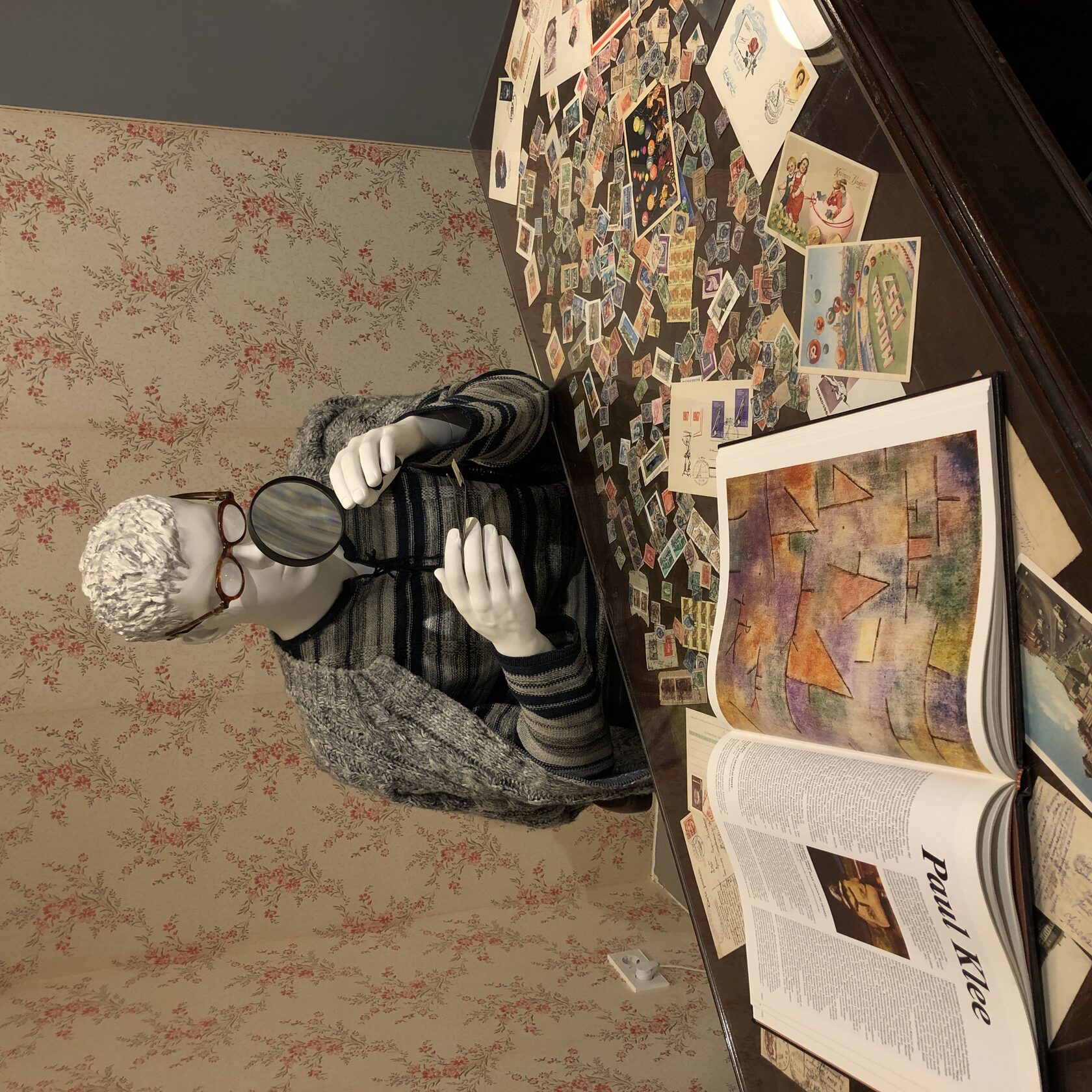 > За основу этой выставки был создан персонаж некоего коллекционера марок, открыток и конвертов. Каждая его картина представляет собой комбинации культурных кодов. В этих работах художник, взяв за основу визуальный образ почтовых марок, конверта, открыток и соединил с картинами известных художников 20 века (Малевич, Кандинский, Пит Модриан, Ротко и др.).